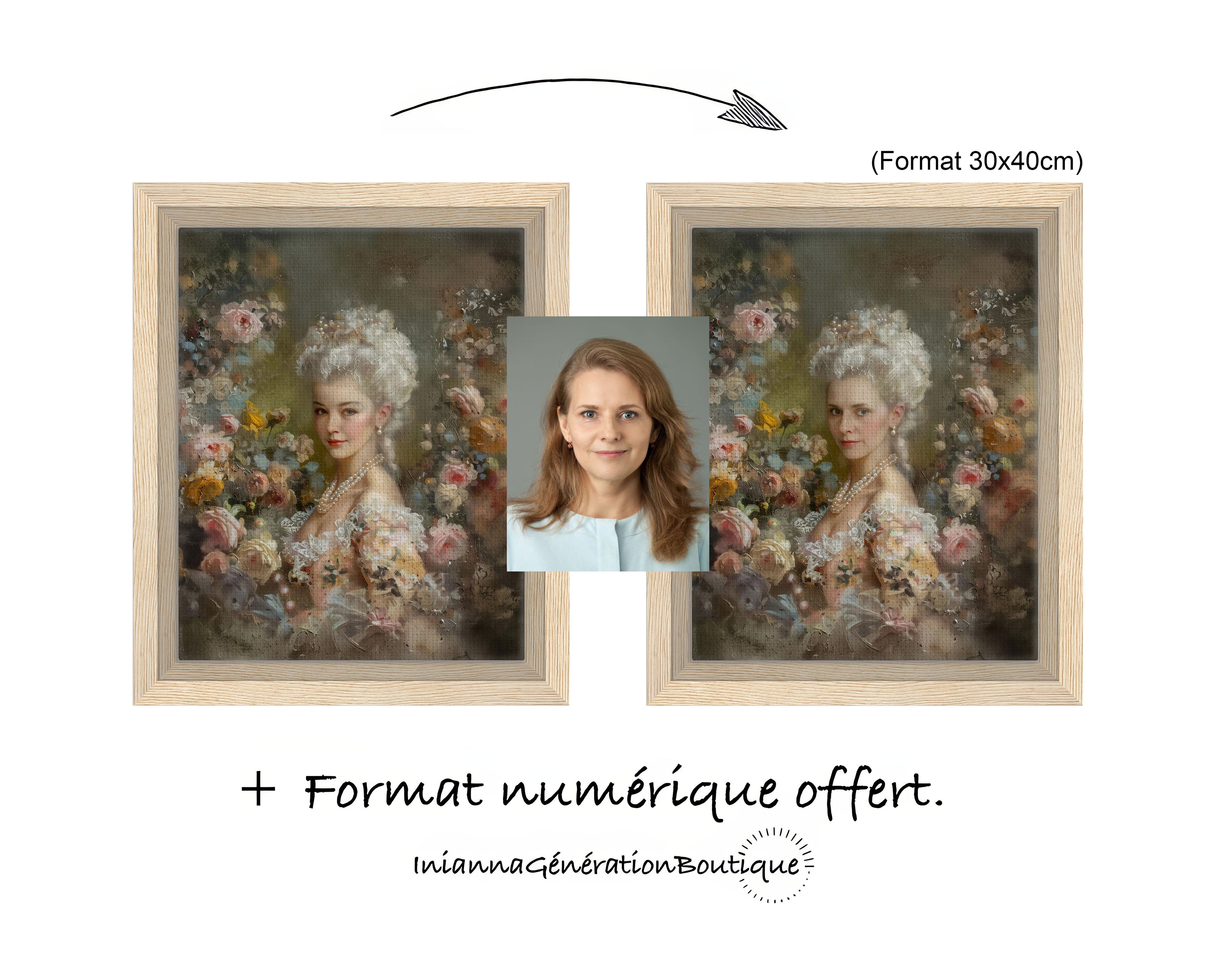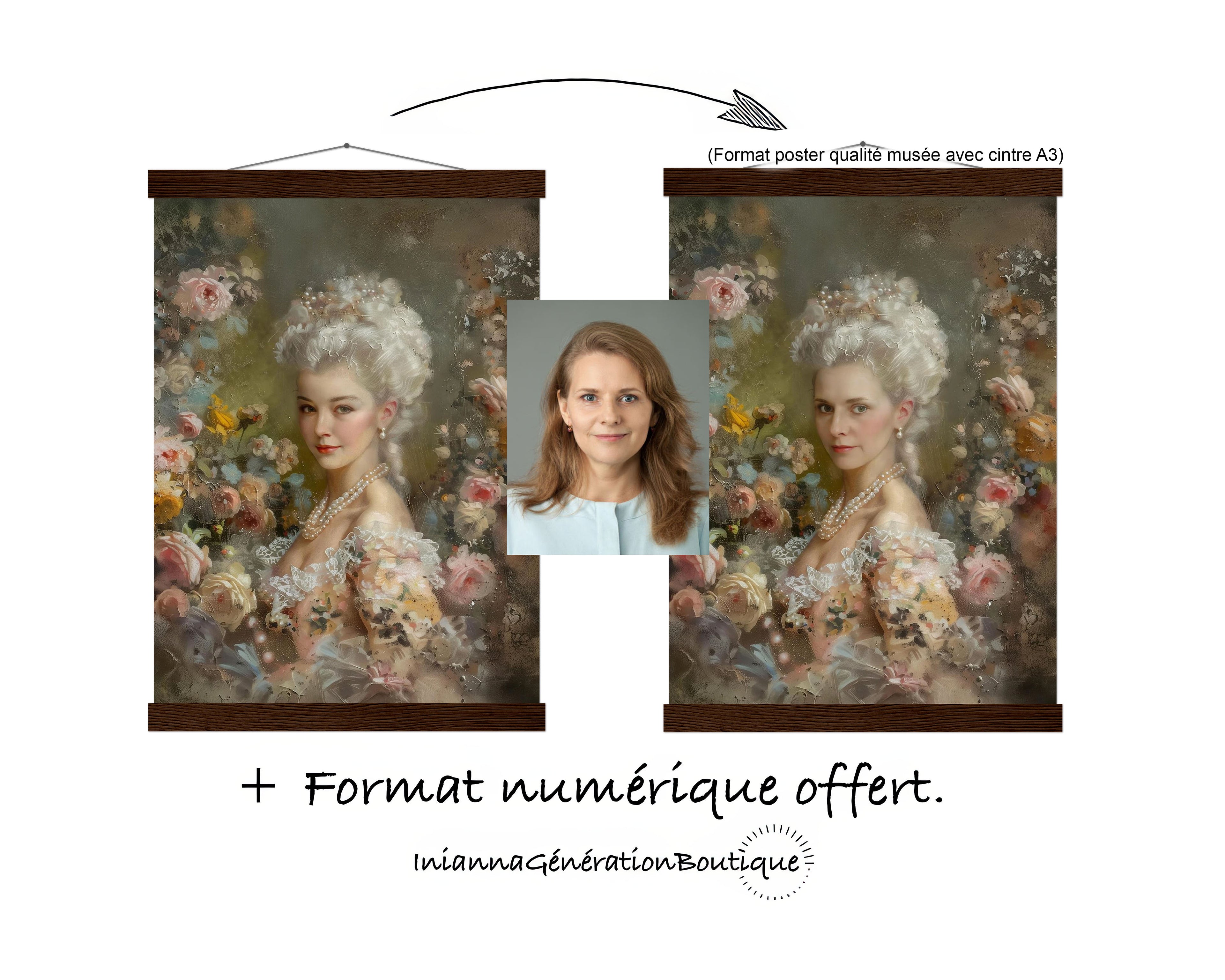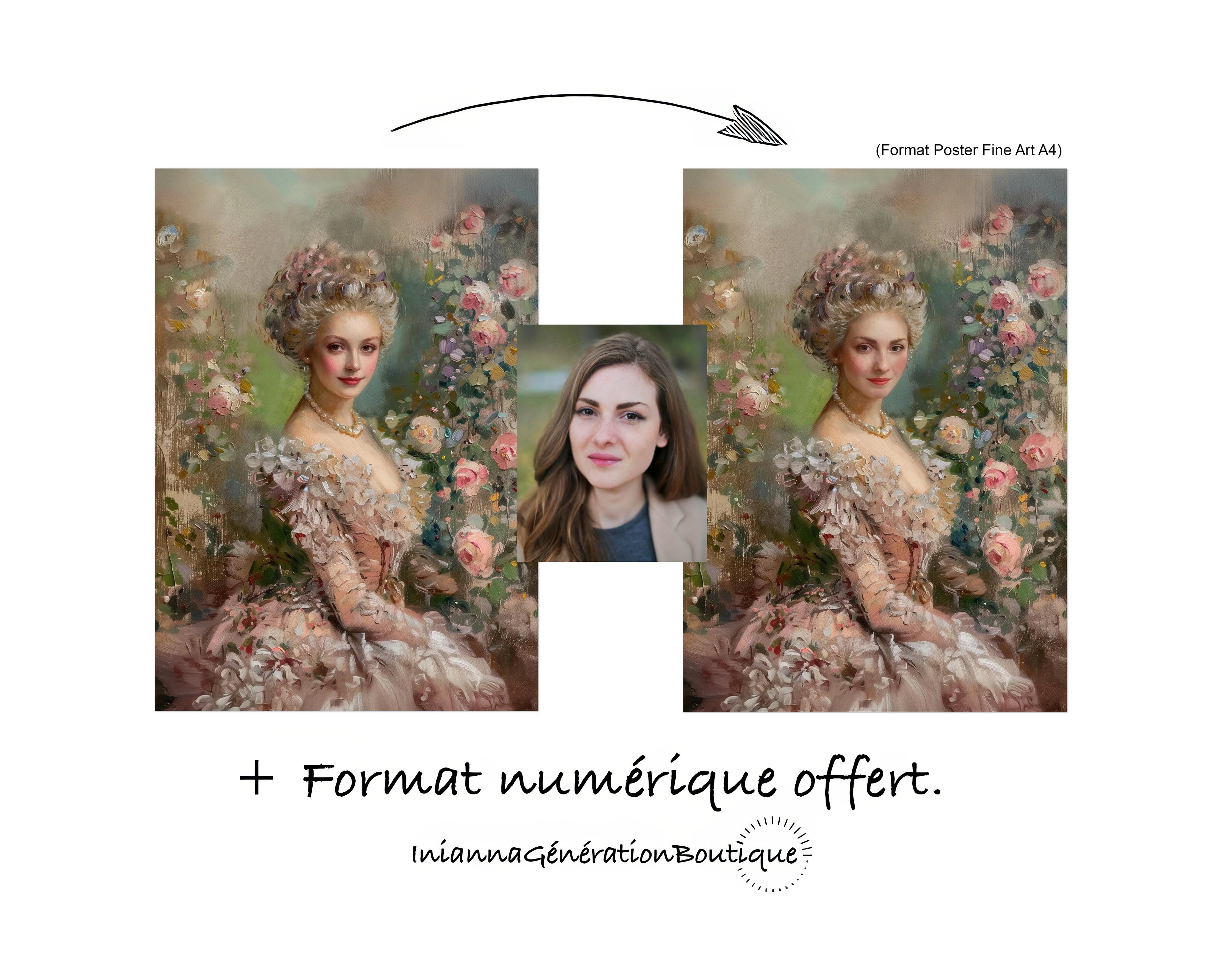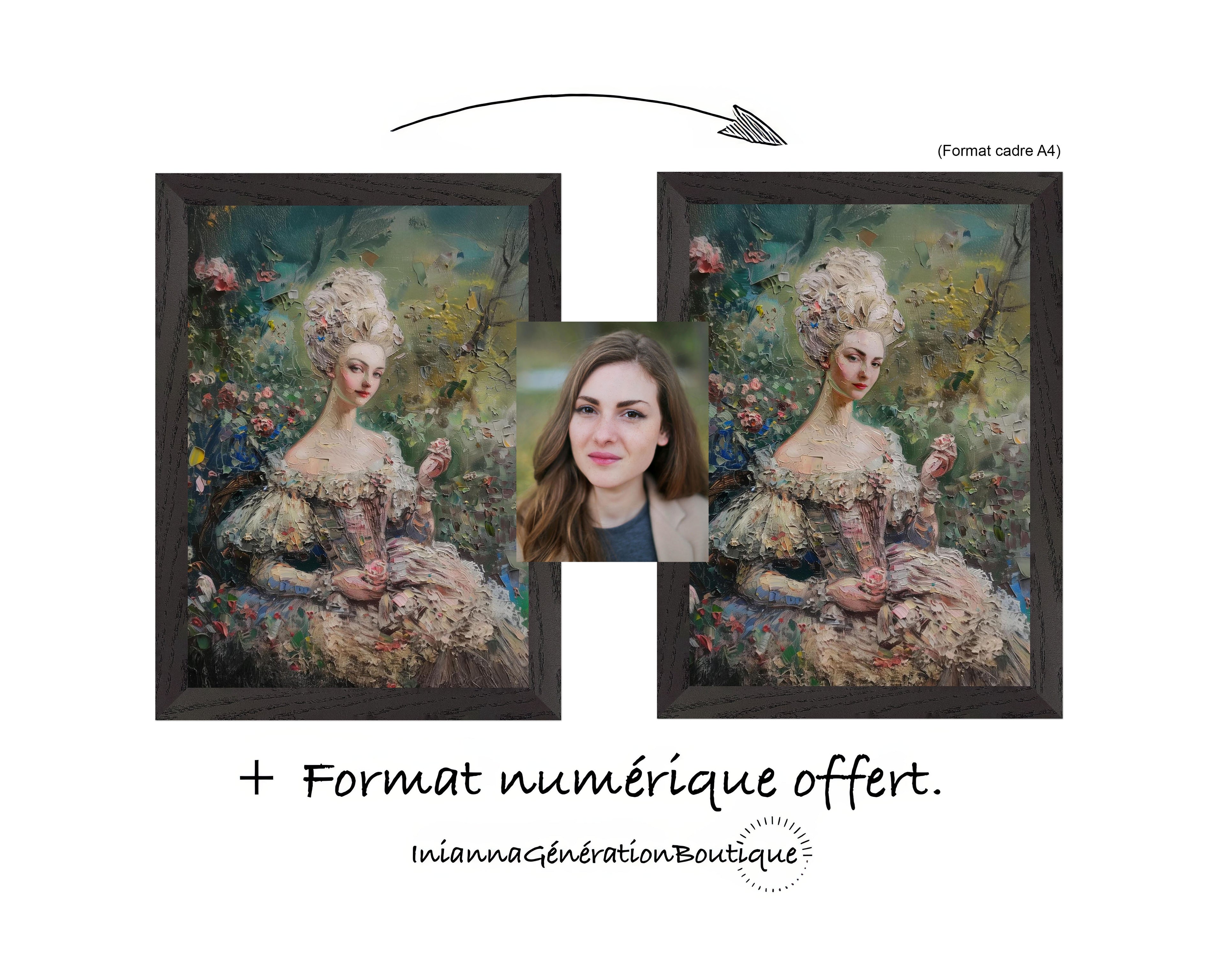 J'ai choisis le portrait Marguerite et j'ai adoré le résultat. L'impression est de qualité ! Le portrait se fond bien avec la déco classique de ma chambre.