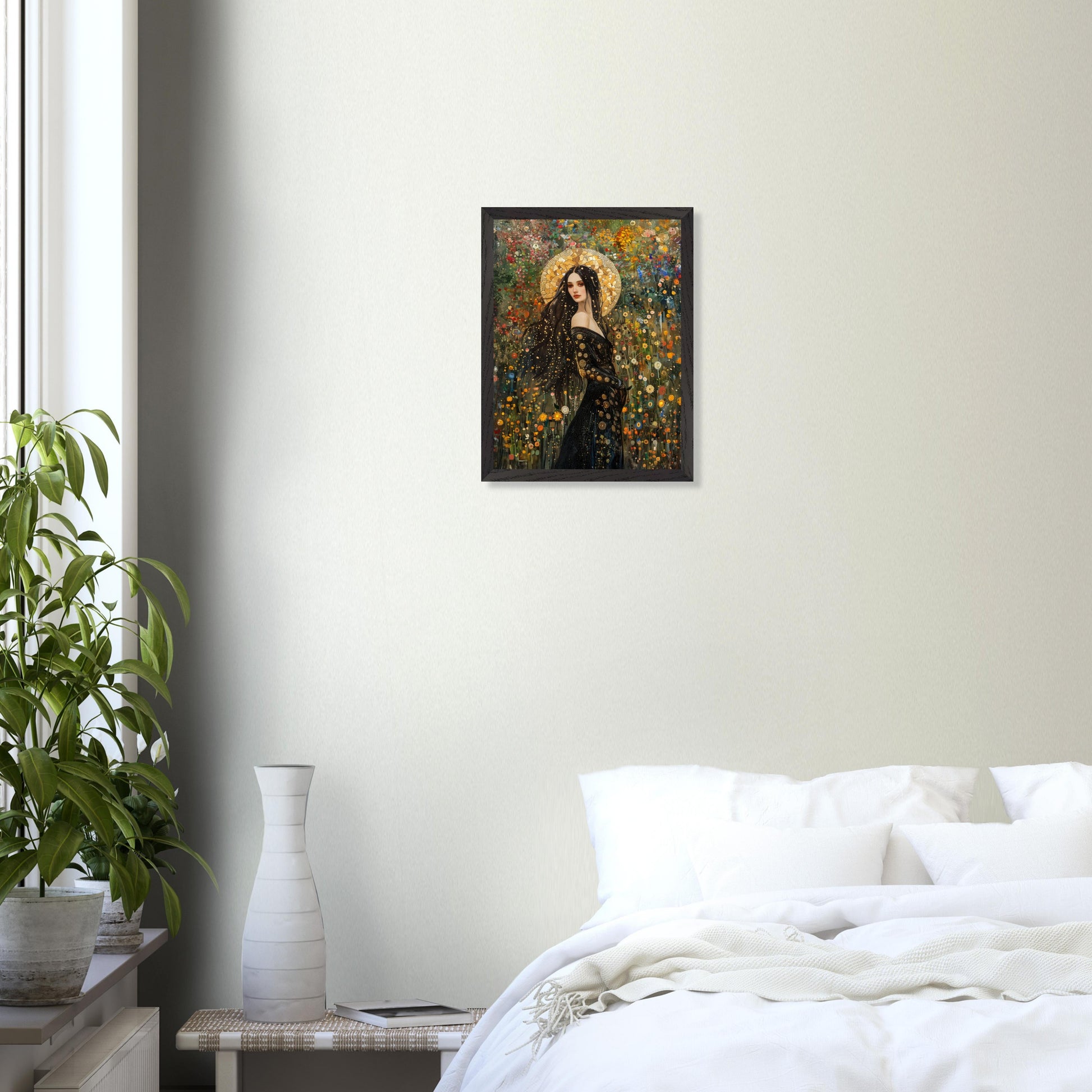 Cette impression artistique encadrée est réalisée sur un papier mat premium 200 g/m², offrant un rendu doux, sans reflet, et une restitution fidèle des nuances dorées, des textures délicates et des contrastes subtils. Protégée par un plexiglas incassable, l’œuvre est mise en valeur dans un cadre en bois massif (chêne ou frêne issus de sources responsables), au grain naturel élégant.