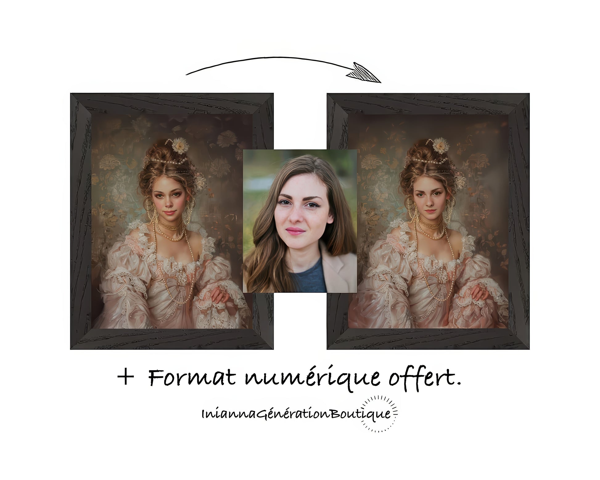 livraison rapide pour une personnalisation ! Beau portrait, va parfaitement avec la déco de mon salon.