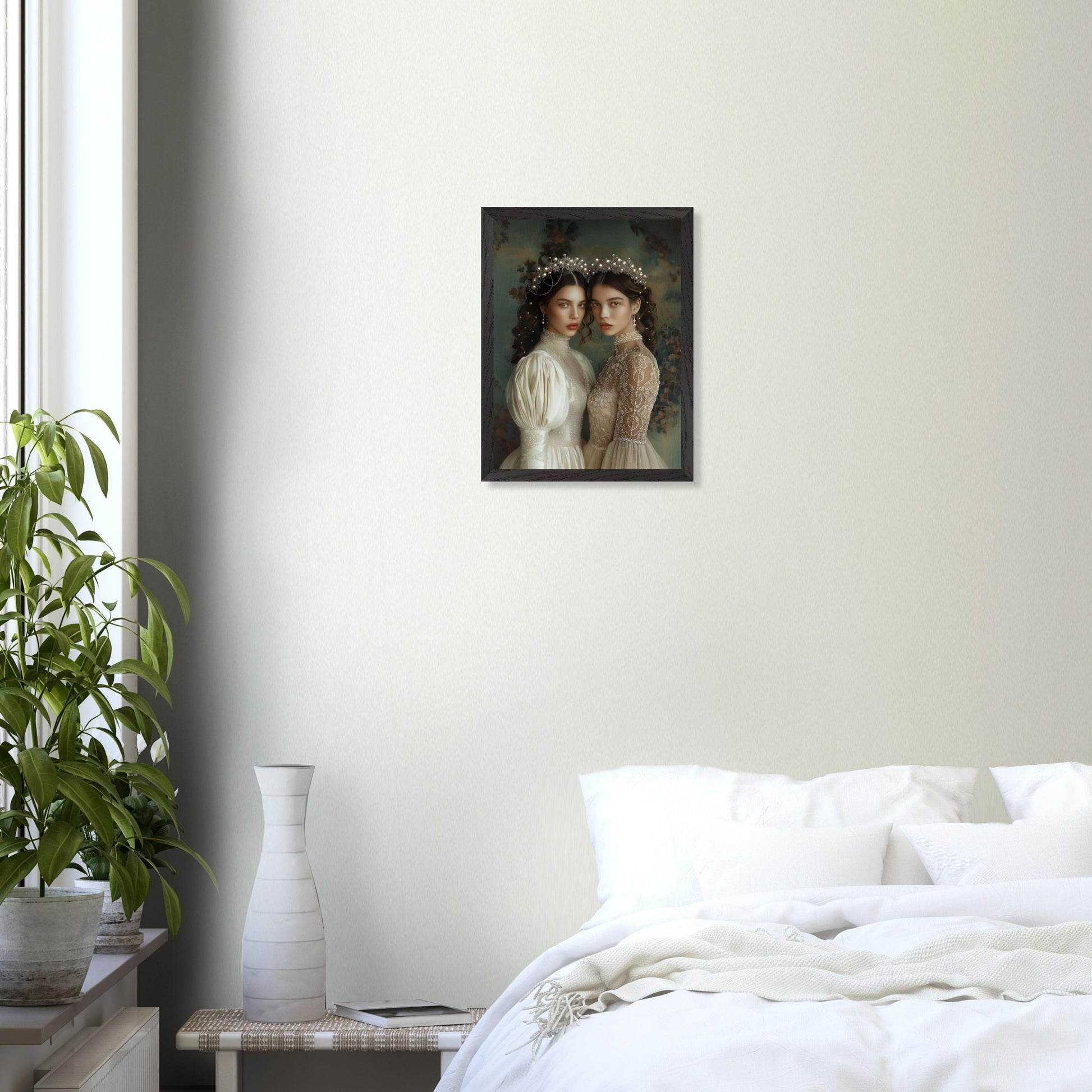 Ce portrait encadré est imprimé sur un papier mat premium 200 g/m², offrant un rendu doux et sans reflet, ainsi qu’une restitution fidèle des nuances satinées, des textures délicates et des contrastes subtils.