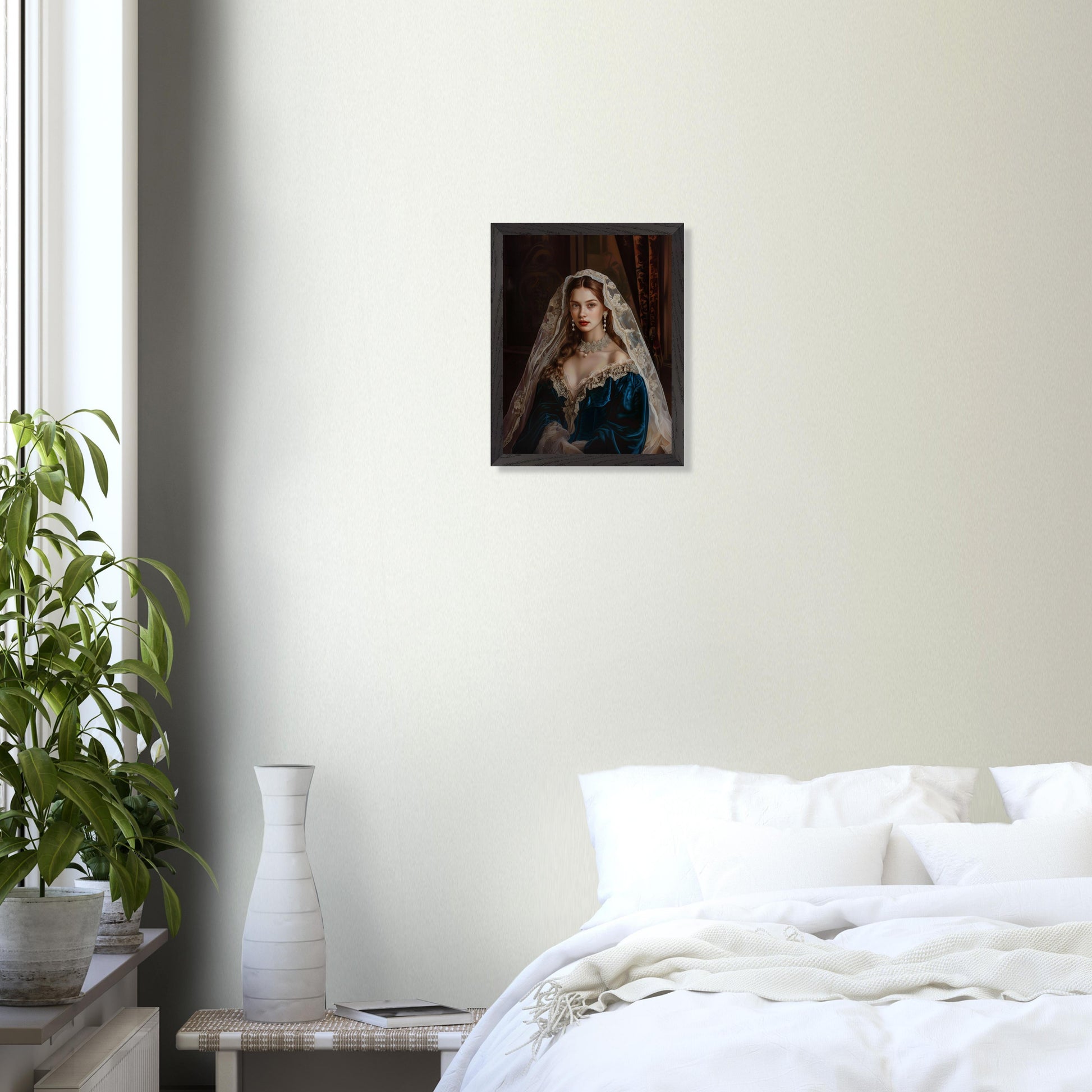 Ce portrait encadré est imprimé sur un papier mat premium 200 g/m², offrant un rendu doux et sans reflet, ainsi qu’une restitution fidèle des nuances satinées, des textures délicates et des contrastes subtils.