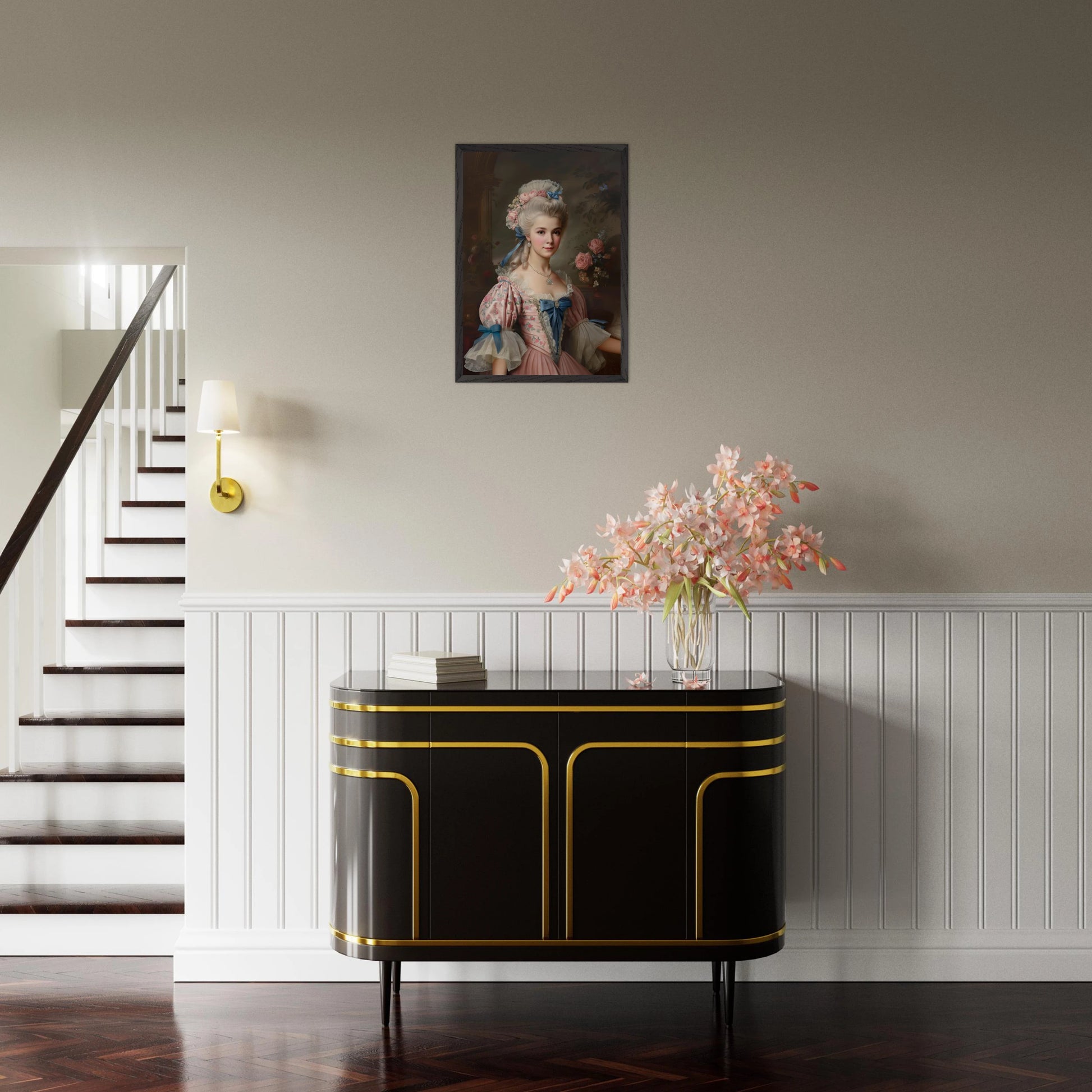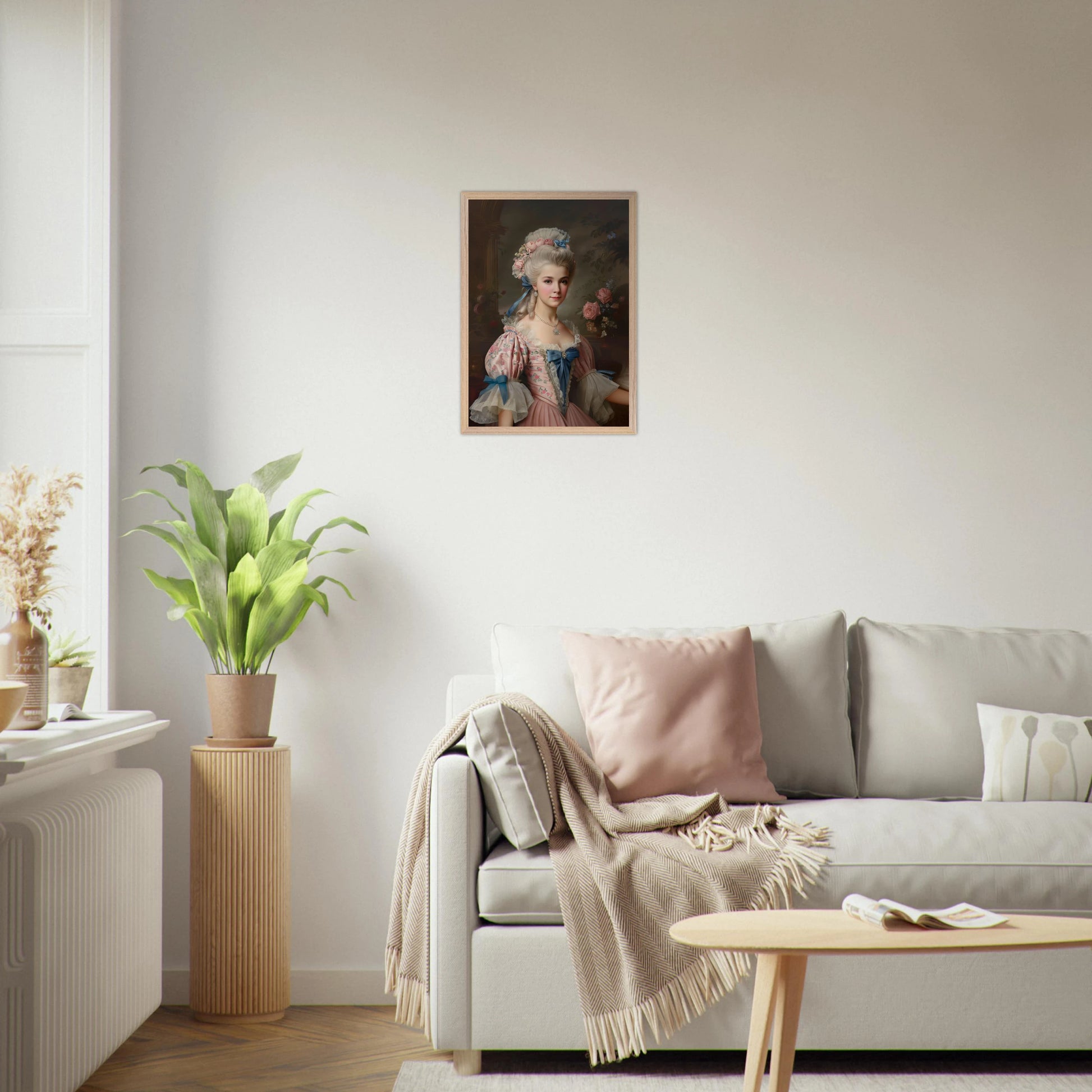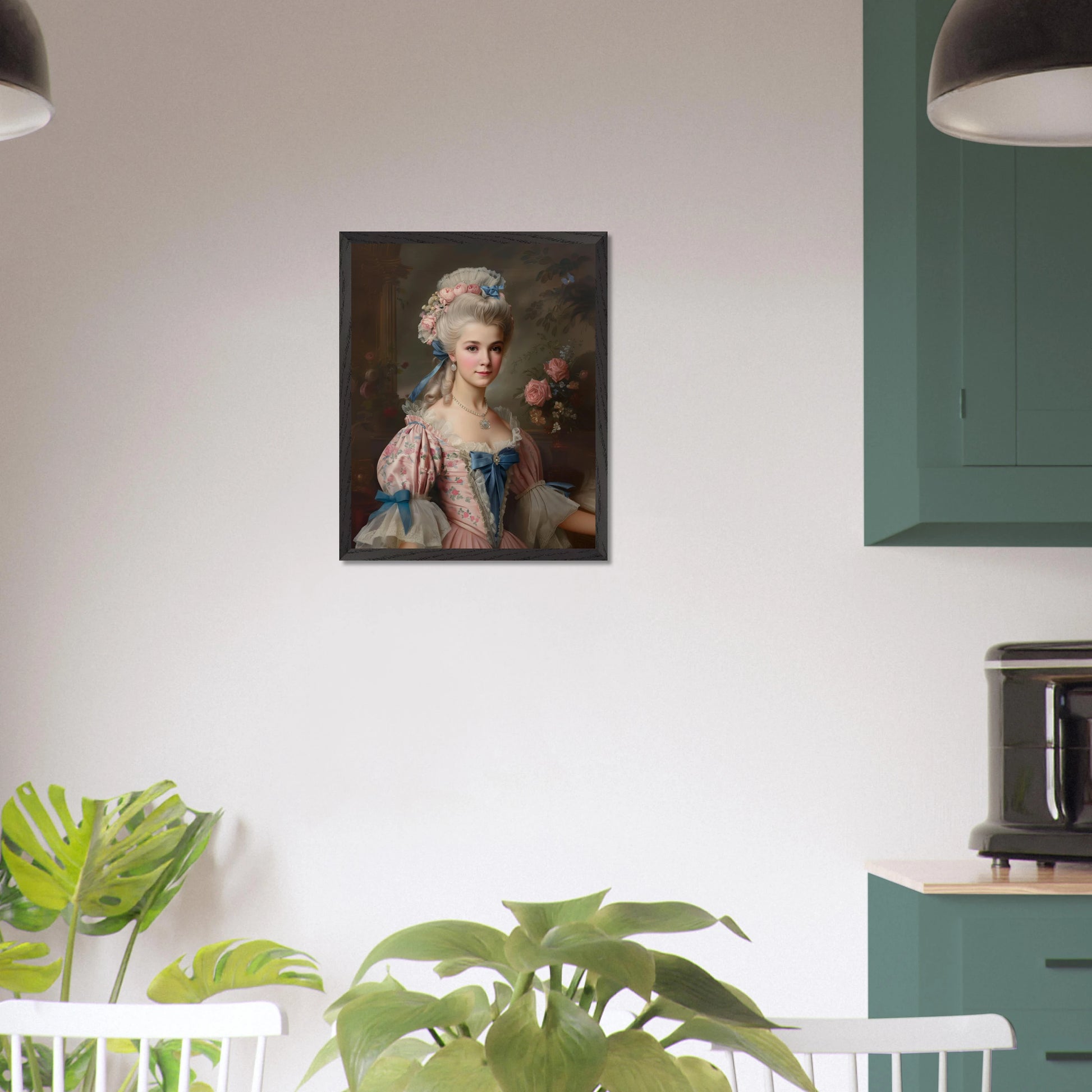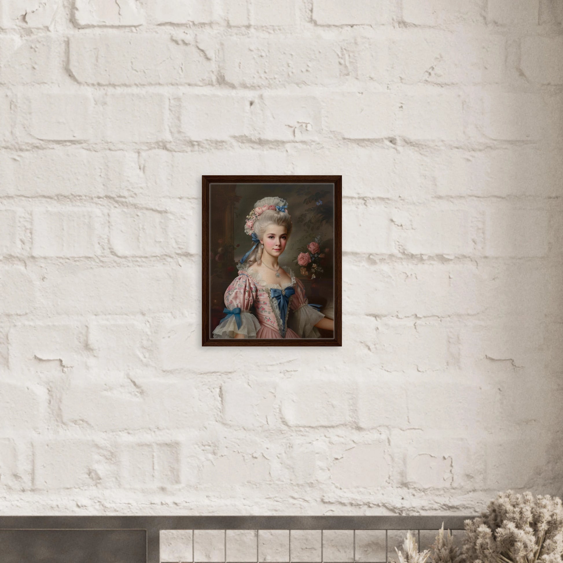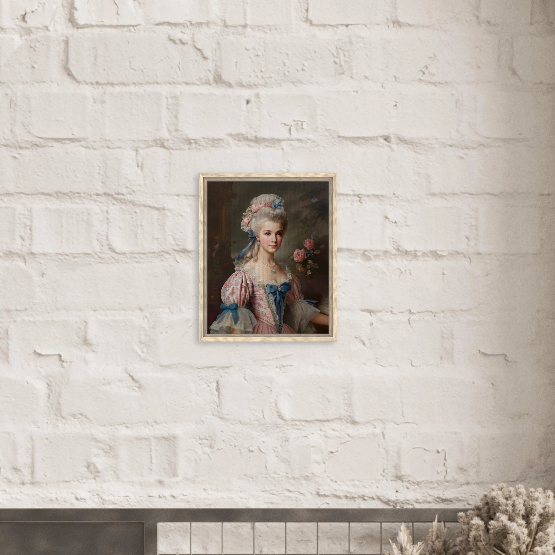 Offrez un cadeau unique avec ce portrait au style rococo, inspiré du XVIIIe siècle. La jeune femme, parée d’une robe pastel ornée de rubans et de dentelles, incarne l’élégance et la grâce intemporelle des dames de la cour —une création élégante et symbolique, parfaite pour célébrer une personne chère avec distinction.